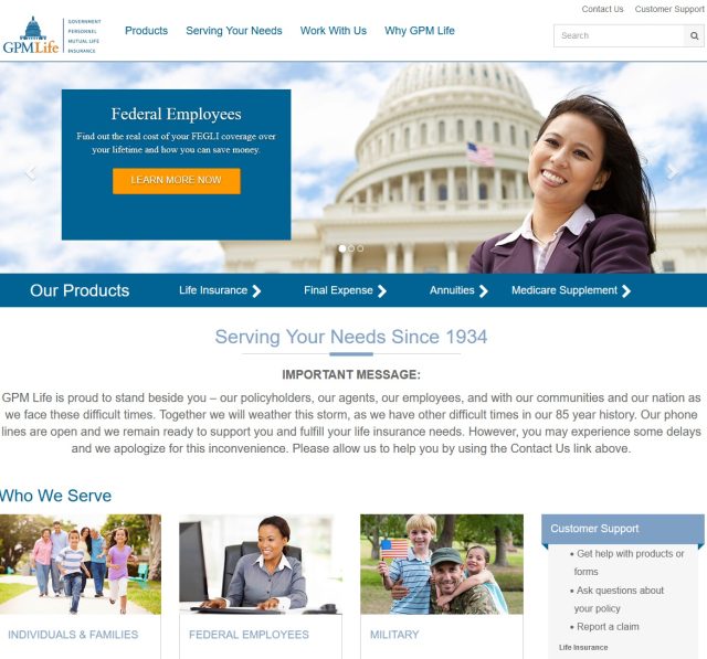 GPM Life is proud to stand beside you – our policyholders, our agents, our employees, and with our communities and our nation as we face these difficult times. Together we will weather this storm, as we have other difficult times in our 85 year history. Our phone lines are open and we remain ready to support you and fulfill your life insurance needs.
